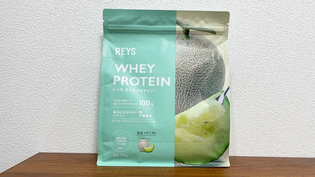 通常、Amazonなどで販売されているREYSプロテインは1kgパッケージですが、今回のドンキ限定メロン味は700gサイズでの展開。
